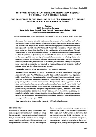 Ridho, Amir (2016) Konstrak Keterampilan mengajar Mahasiswa Program Pendidikan Guru Sekolah Dasar. Jurnal Balitbang. ISSN 97865489762