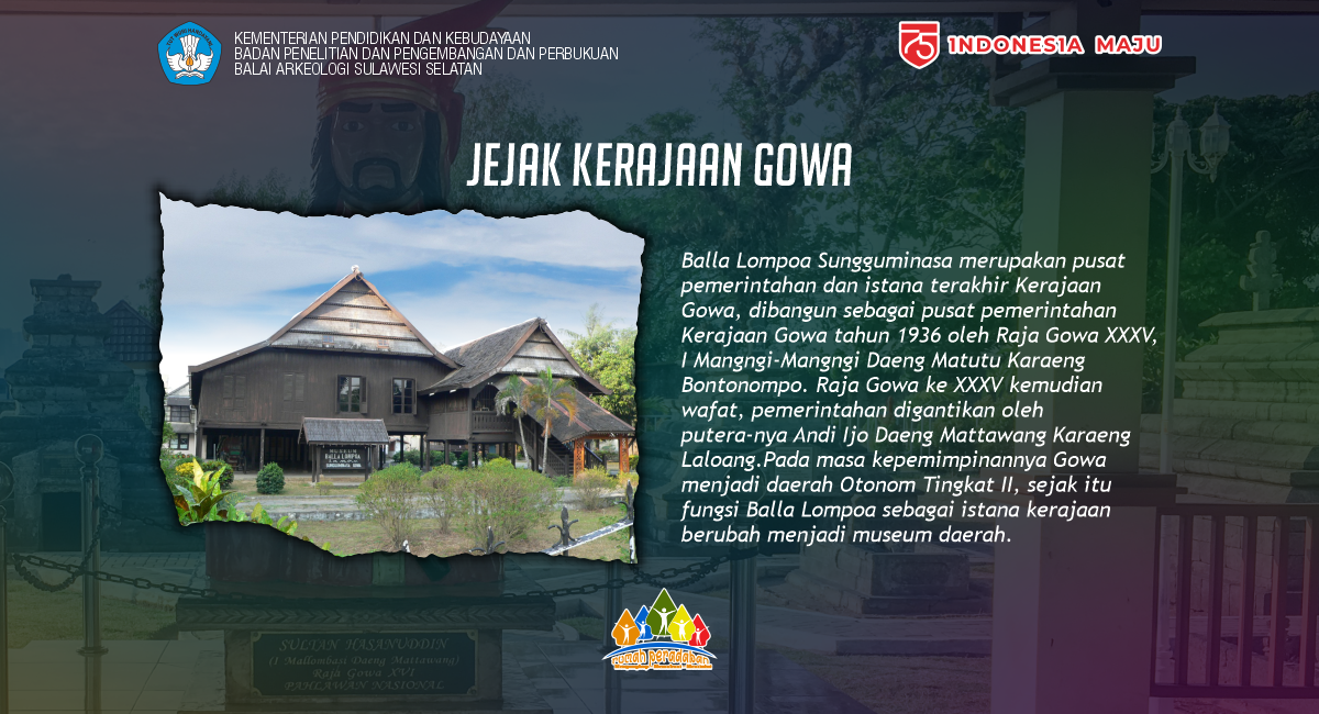 Purnamasari, Nurul Adliyah and Andika, Saputra (2020) Jejak Kerajaan Gowa. Balai Arkeologi Sulawesi Selatan, Makasar.