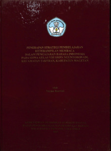 Penerapan strategi pembelajaran ketrampilan membaca dalam pengajaran Bahasa Indonesia pada siswa kelas VIII SMPN Nguntoronadi, Kecamatan Takeran, Kabupaten Magetan memuat penelitian tentang strategi pembelajaran membaca dalam pengajaran Bahasa Indonesia.