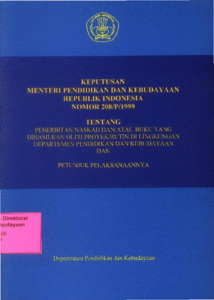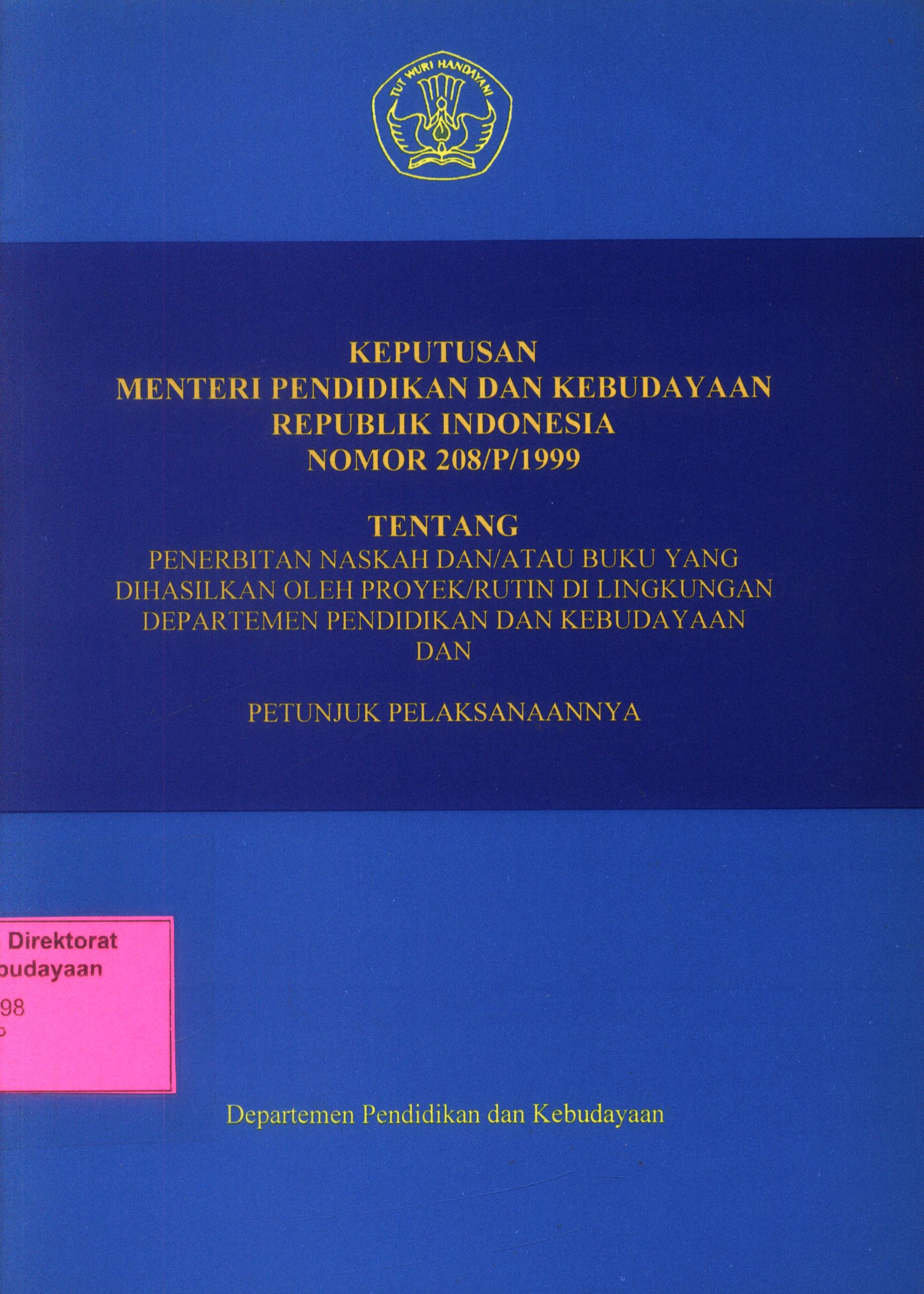 Keputusan menteri pendidikan dan kebudayaan republik Indonesia nomor 208/P/1999 tentang penerbitan naskah dan/atau buku yang dihasilkan oleh proyek/rutin di lingkungan departemen pendidikan dan kebudayaan menjelaskan mengenai