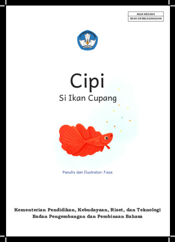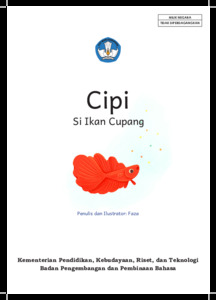 Zahra, Fatimah (2021) Cipi si ikan cupang. Badan Pengembangan dan Pembinaan Bahasa, Jakarta. ISBN 978-623-307-158-1