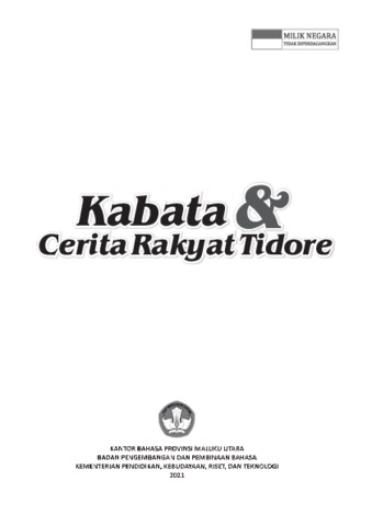 Rahman, Harun A and Khamary, Ryan M. (2021) Kabata & cerita rakyat Tidore. Kantor Bahasa Provinsi Maluku Utara, Kementerian Pendidikan, Kebudayaan, Riset, dan Teknologi, Kota Tidore Kepulauan. ISBN 978-623-98653-1-3