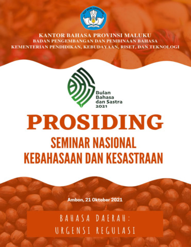 Text (PROSIDING SEMINAR NASIONAL KEBAHASAAN DAN KESASTRAAN. Bahasa Daerah: Urgensi Regulasi. Bulan Bahasa dan Sastra 2021)