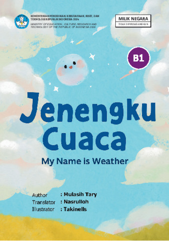 Mulasih, Tary (2024) Jenengku cuaca = My name is weather. Cerita anak . Balai Bahasa Provinsi Jawa Tengah, Semarang. ISBN 9786235043098