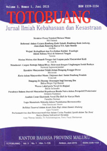 Fatinah, Siti and Jahdiah, Jahdiah and Tamrin, Tamrin and Saptawuryandari, Nurweni and Mulawati, Mulawati and Uniawati, Uniawati and Hastuti, Heksa Biopsi Puji and Safarudin, Balok and M. Asri В., M. Asri В. and Kastanya, Helmina and Darman, Faradika and Hasan, Nita Handayani and Yulianto, Agus and Jatnika, Asep Wawan and Sulistianingtyas, Tri and Hermawan, Ferry Fauzi (2015) TOTOBUANG: Jurnal Ilmiah Kebahasaan dan Kesastraan. Volume 3, Nomor 1, Juni 2015. TOTOBUANG: Jurnal Ilmiah Kebahasaan dan Kesastraan, 3 (1). pp. 1-135. ISSN 2339-1154
