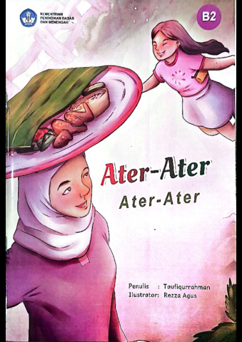 Buku ini menceritakan tentang Ater ater merupakan salah satu budaya Madura. Ater-ater adalah memberikan makanan kepda sudara atau guru ngaji saat ada hajatan. Buku ini memiliki dua bahasa yaitu, Bahasa Madura dan Bhasa Indonesia.