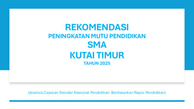 Safrudin, Safrudin (2025) Rekomendasi peningkatan mutu pendidikan SMA Kutai Timur tahun 2025. Balai Penjaminan Mutu Pendidikan Provinsi Kalimantan Timur.