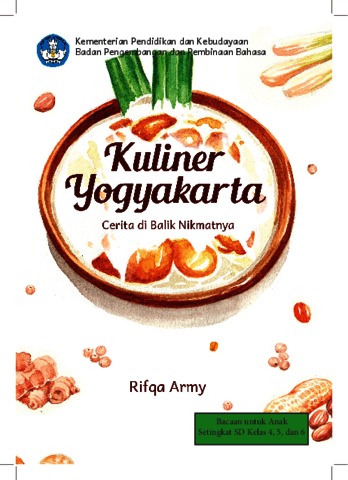 Army, Rifqa (2017) Kuliner Yogyakarta: cerita dibalik nikmatnya. cerita dibalik nikmatnya . Badan Pengembangan dan Pembinaan Bahasa Kementrian Pendidikan dan Kebudayaan, Jakarta. ISBN 9786024372743