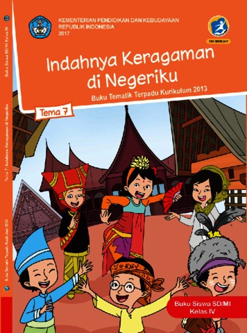 Kusumawati, Heny (2017) Indahnya keberagaman di negeriku. Buku tematik terpadu kurikulum 2013 (Tema 7), buku siswa SD/MI kelas IV. Pusat Kurikulum dan Perbukuan, Balitbang, Kemendikbud, Jakarta. ISBN 9786022829041