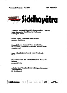 Siregar, Sondang Martini and Utomo, Bambang Budi and Purwanti, Retno and Mujib, - and Novita, Aryandini and Fahrozi, M.Nofri (2013) Jurnal Arkeologi Siddhayatra Vol.18 No.1 Tahun 2013. Jurnal Arkeologi Siddhayatra, 18 (1). Balai Arkeologi Palembang, Palembang. ISBN 0853-9030